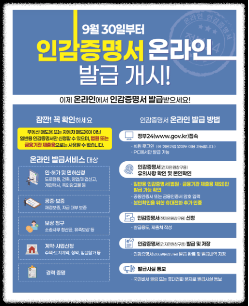 2024년 9월 30일부터 인감 증명서를 인터넷으로 발급받을 수 있습니다.
